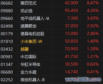 机器人概念股多股上涨,第四范式涨超8%。马斯克在利雅得举行的沙特-美国投资论坛上预测,人形机器人数量最终将达到数百亿。山西证券分析指出,国内机器人行业2025年进入量产元年,随着数据积累、大模型迭代以及硬件成本下降人形机器人大规模走向工业以及家用场景值得期待。