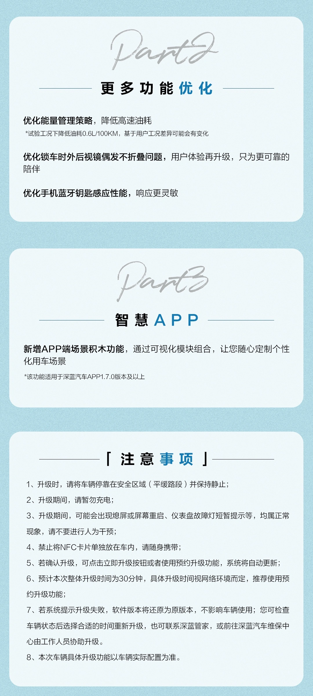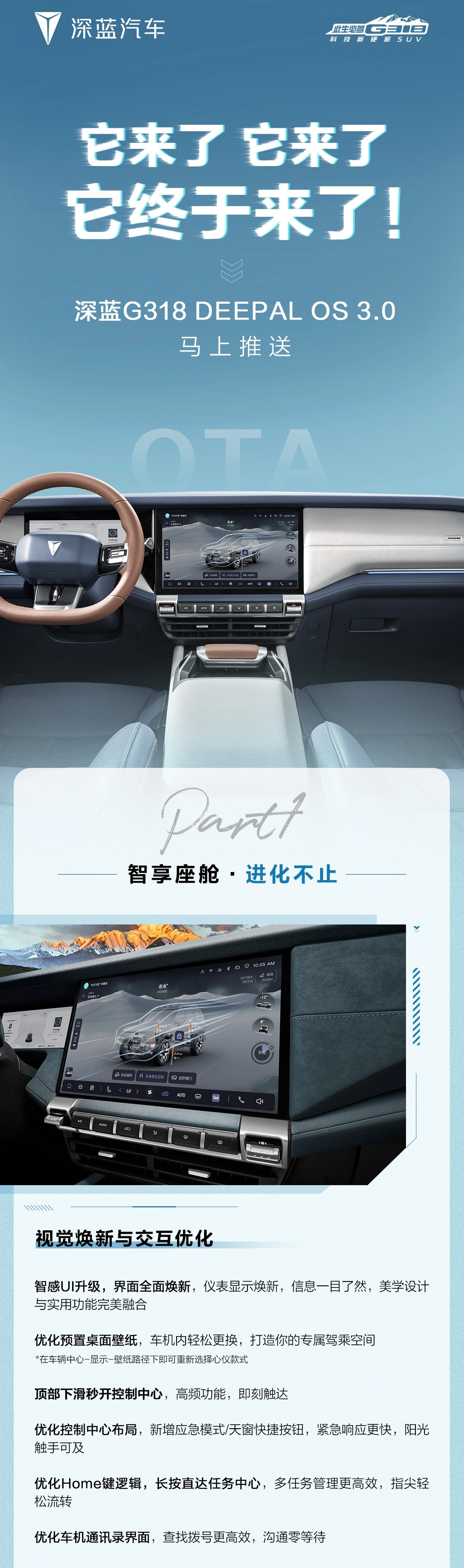 IT之家附长安深蓝 G318 汽车 DEEPAL OS 3.0 系统更新内容如下: