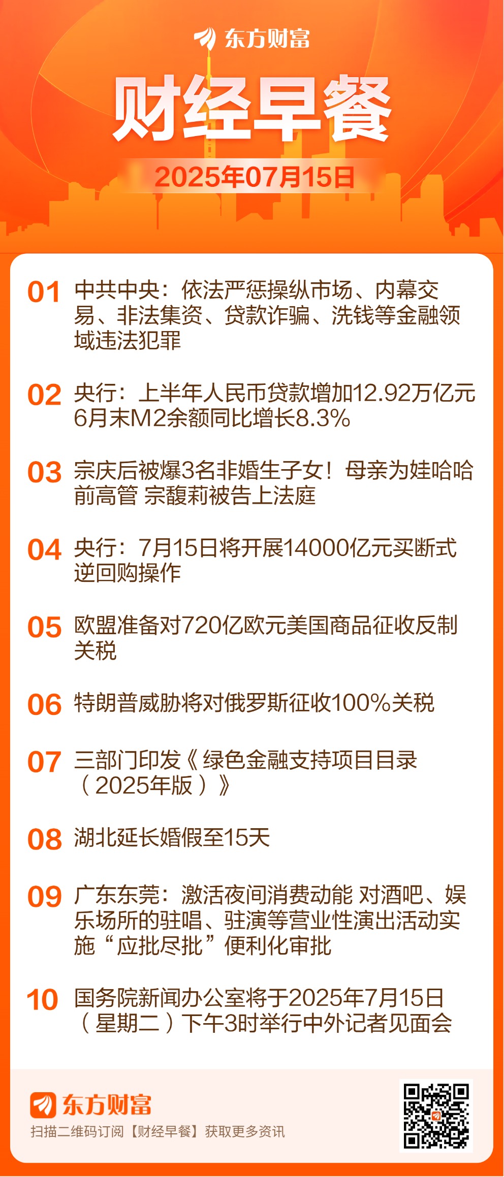 股票配资平台开户 【7月15日Choice早班车】加量续作!央行今日将开展14000亿元买断式逆回购操作