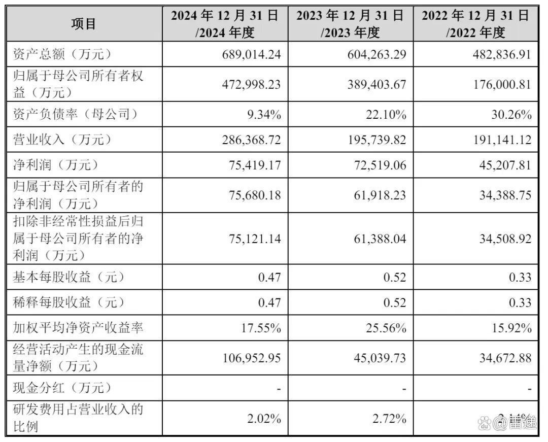 招股书显示股票线上配资,盛龙股份2022年、2023年、2024年营收分别为19.11亿元、19.57亿元、28.64亿元;净利分别为4.52亿元、7.25亿元、7.54亿元;扣非后净利分别为3.45亿元、6.14亿元、7.51亿元。